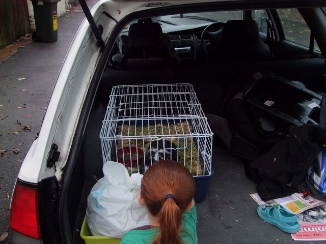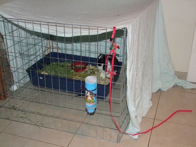 We've been making a great hutch out of an old cot, but during some massive rains the cot got soaked, and so we needed to work out a different option for Winnie during the day while spending the evenings inside